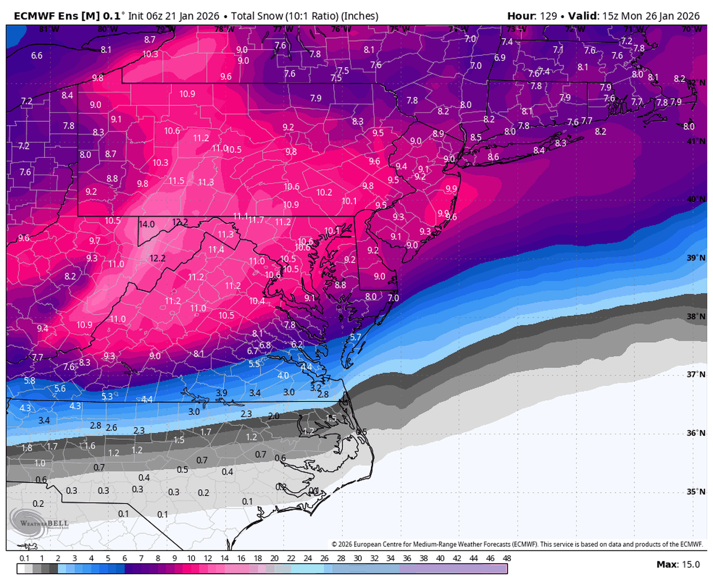 Many of the models suggest a period of sleet and/or freezing rain toward the end of the storm on Sunday afternoon or evening, cutting back some on snow accumulations.